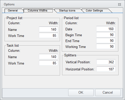 The Columns Widths of the data grids can be set in this page. You can also use your mouse pointer to click and drag the grids to a size that pleases you too.